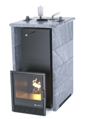 Дровяная печь «ГЕЛЕНДЖИК» в трехстороннем кожухе из талькохлорита с защитным экраном