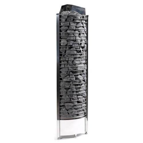 Конструкция каменки предполагает угловую напольную установку и большую вместимость камней до 70 кг. Корпус печи имеет нетипичную форму вертикального цилиндрического каркаса. Нагревательные элементы находятся в центре электрокаменки и по краям обкладываются камнем.