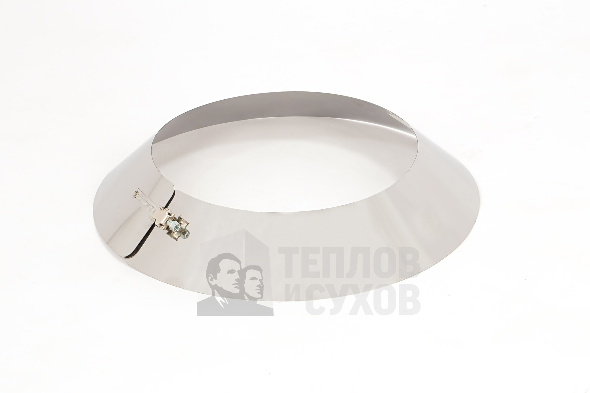 Фартук предназначен для защиты от атмосферных осадков, попадающих в зазор между трубой дымохода и конусом прохода кровли, декоративного закрытия зазора между трубой дымохода и листом потолочным, проходом перекрытия.