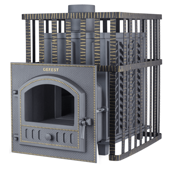 GFS-ЗК в сетке 40(М) — печь с усиленной каменкой большей массы, с единым углублением внутрь топки для дополнительной укладки чугунного заряда.
