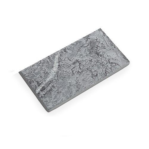 Плитка талькохлорит искусственного старения оригинальный облицовочный материал для отделки печей, каменок и каминов, отделки панелей и стен бань, саун и хаммамов, для укладки полов в предбаннике, жилых помещениях, бассейнах. Производится плитка из цельного массива камня. В процессе изготовления талькохлорит разрезается и поверхности обрабатываются. Лицевая поверхность полируется и искусственно состаривается. Другие поверхности остаются шероховатые, что облегчает укладку и повышает сцепление. Для укладки плитки применяется специальный клей. Плитка из талькохлорита искусственного старения в основном серого или темно серого цвета с прожилками, вкраплениями, белесыми потертостями и частичными разрушениями. Изделия из талькохлорита очень прочные и термоустойчивые. Каждая плитка единственная в своём роде благодаря природному материалу, где нет повторений. Поверхность, облицованная таким материалом, выглядит очень оригинально и благородно. Плитка отличается не только красотой, она сохраняет и целебные свойства материала. Каменка, отделанная талькохлоритом, наполняет парную хорошим животворящим микроклиматом.