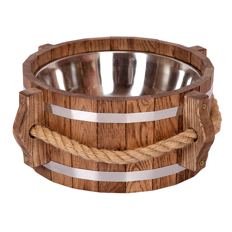 Шайка из дуба под маслом темная, с вставкой из нержавейки, ручка канат, 5 л