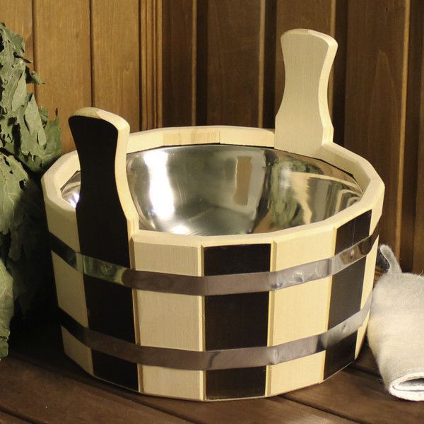 Для увеличения срока службы шайка из липы оснащена нержавеющей вставкой. Этот банный аксессуар прочен, красив и хорошо сохраняется под воздействием перепадов температуры и влажности.