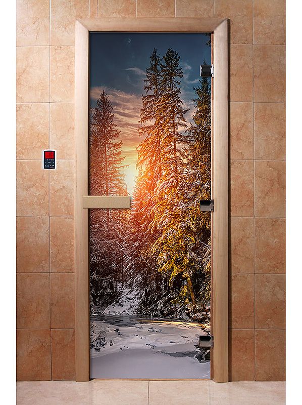 Дверь с фотопечатью. На рисунке изображен зимний лес на закате. Открывание двери на выбор (уточняйте при заказе). Коробка из ольхи с полотном из закаленного стекла толщиной 8 мм c фотопечатью. Благодаря использованию закаленного стекла дверь имеет долгий срок эксплуатации. Ручка деревянная с магнитным замком. Петли: 3 шт. Не требует особого ухода, не деформируется при высоких температурах до 300 С. Имеет приятный внешний вид, идеально подходит к любому интерьеру.