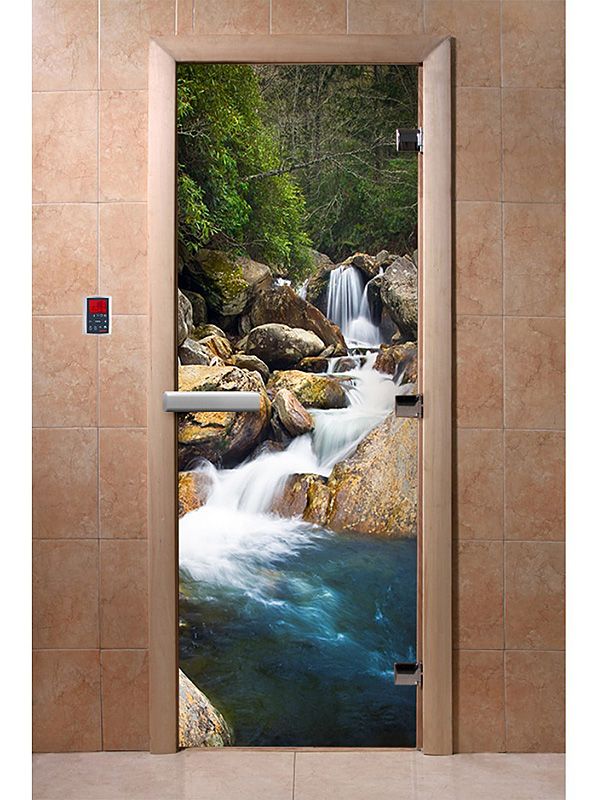 Дверь с фотопечатью. На рисунке изображена горная река с каскадами. Открывание двери на выбор (уточняйте при заказе). Коробка из ольхи с полотном из закаленного стекла толщиной 8 мм c фотопечатью. Благодаря использованию закаленного стекла дверь имеет долгий срок эксплуатации. Ручка деревянная с магнитным замком. Петли: 3 шт. Не требует особого ухода, не деформируется при высоких температурах до 300 С. Имеет приятный внешний вид, идеально подходит к любому интерьеру.