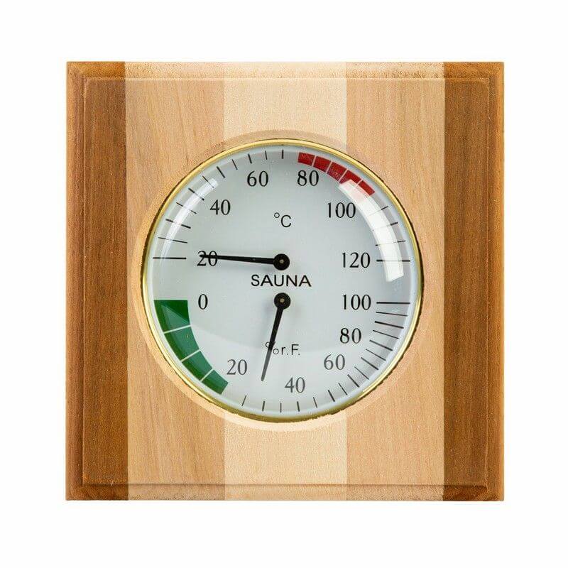 Термогигрометры для бани и сауны, предназначены для измерения температуры и влажности в парильном помещении бани, сауны. Максимальный показатель температуры 120 °C. Используется несколько вариантов исполнения деревянных рамок для измерительных приборов: липа, ольха, термодревесина, комбинированная древесина (ольха, липа, термодревесина).